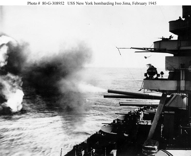 During the next 3 days, New York's big guns were active bombarding Iwo Jima