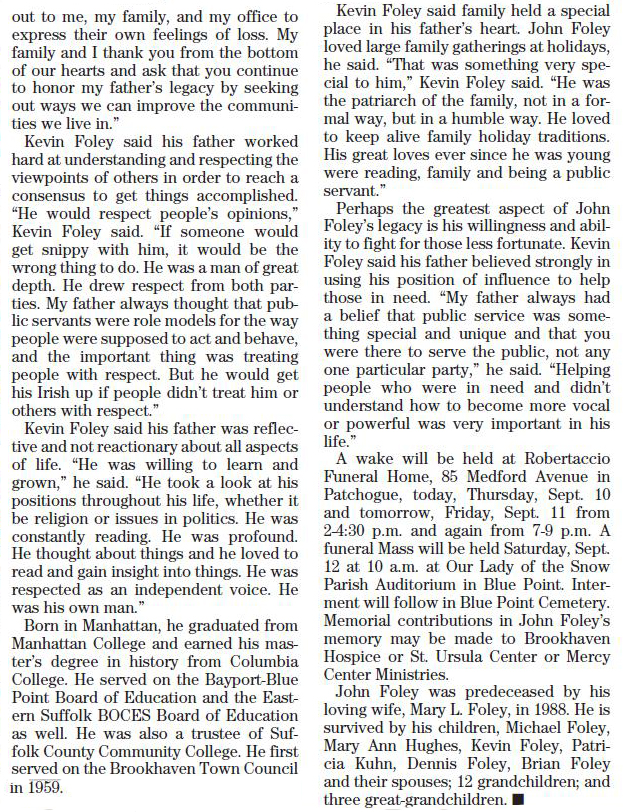 Veteran Brookhaven, Suffolk Legislator John Foley