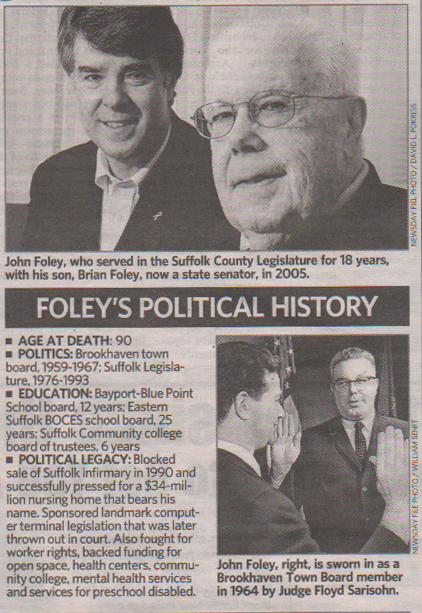 John Foley, a pioneer Democrat who served 18 years as a Suffolk legislator - longer than